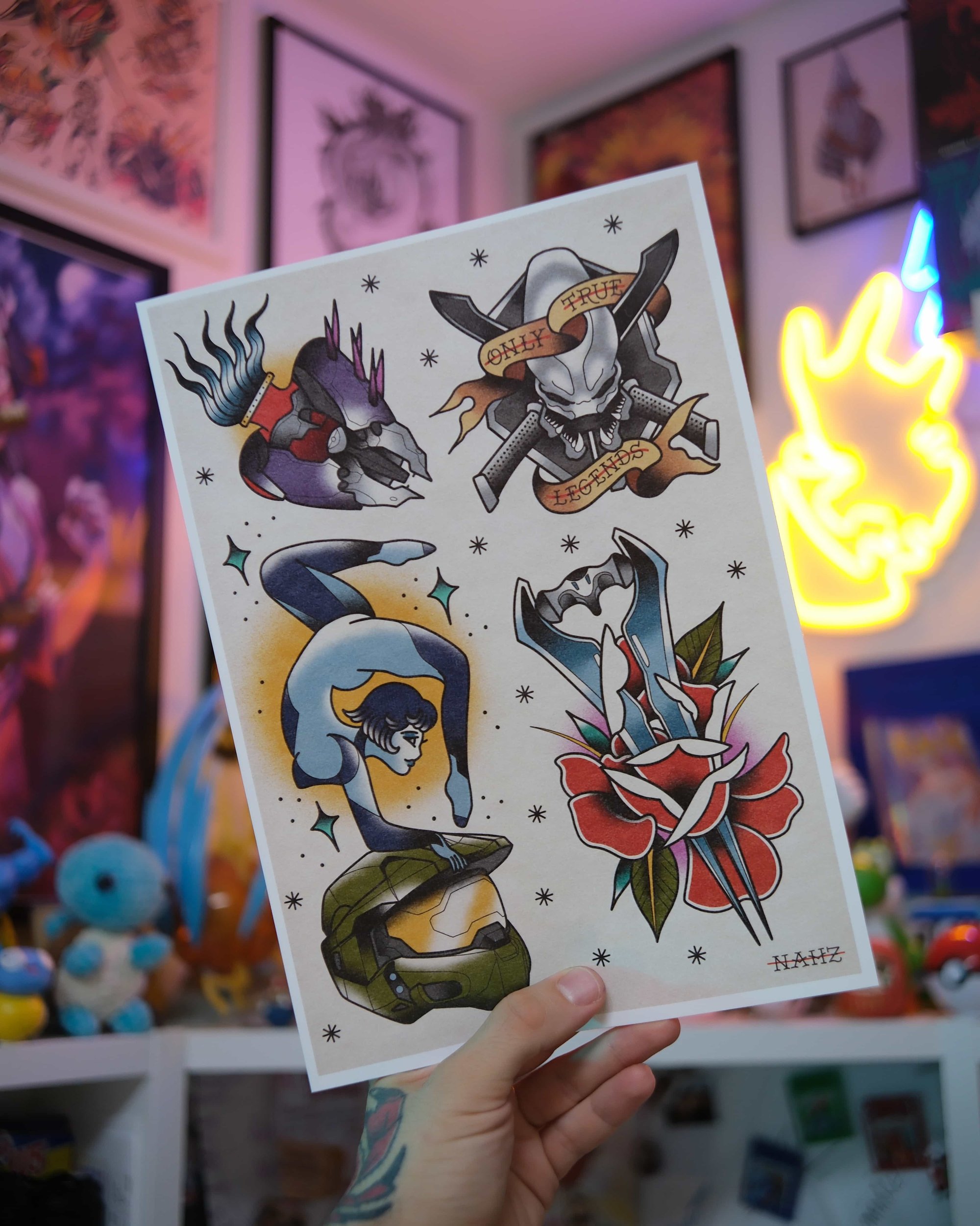 Tous les visuels présents sur les prints sont destinés à être tatoués. N'hésite pas si un flash te fait de l'oeil, contacte-moi via mon site !