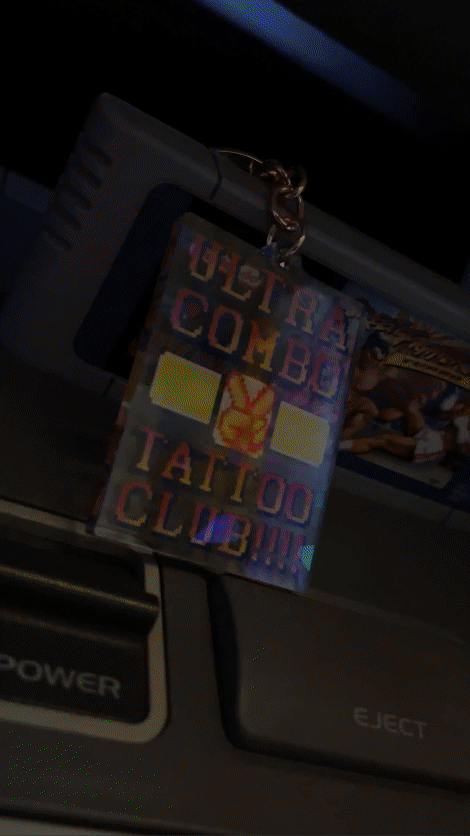 Si tu veux te la péter avec un porte-clé unique en son genre, il te faut celui d’UCTC version Street Fighter 2 ! L’effet holographique et son impression de qualité te feront te battre avec n’importe qui qui appuierait sur Start !